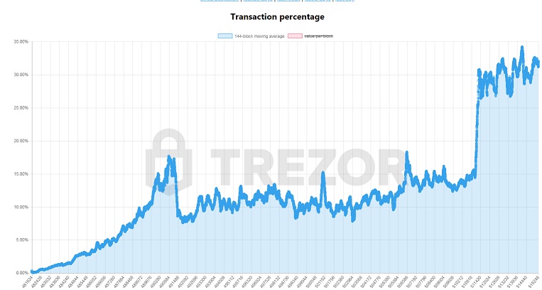 Bzgl. Segwit seh ich das stagnieren nicht, schau dir den Gesamtchart an, das deutet alles auf weitere steigende Adoption hin, siehe Screenshot unten.
