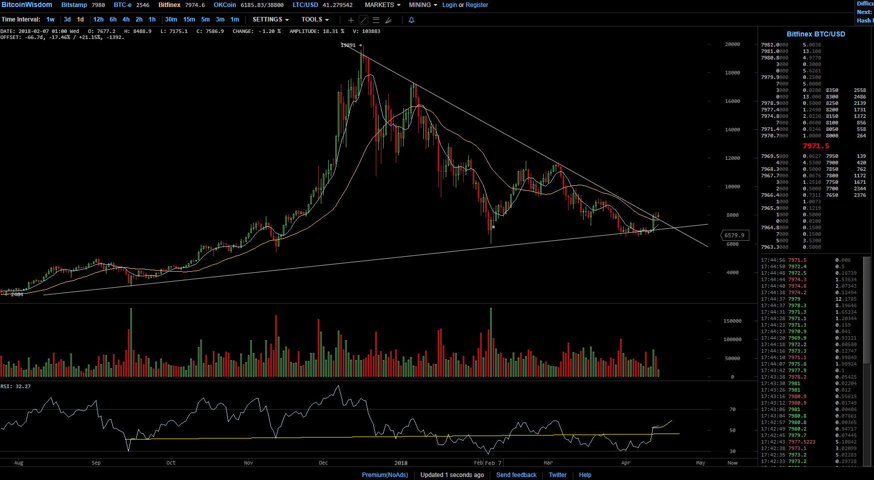 Ein sehr interessanten Fakt möcht ich auf jeden Fall noch erwähnen: bekannte Persönlichkeiten der Cryptoszene haben wiederholt berichtet, dass sie letzte Woche telefonisch gigantische Kauforders für BTC mit Preisnachlässen von 7% zum Börsenpreis angeboten bekommen haben.