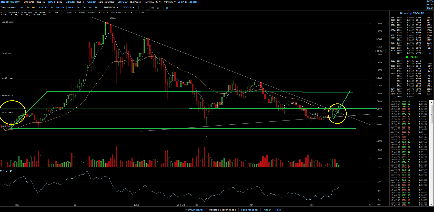 Natürlich kann jederzeit irgendwer aus dem Busch gesprungen kommen und plötzlich 20k BTC auf den Markt werfen, so etwas lässt sich niemals mit keiner Charttechnik vorhersehen.