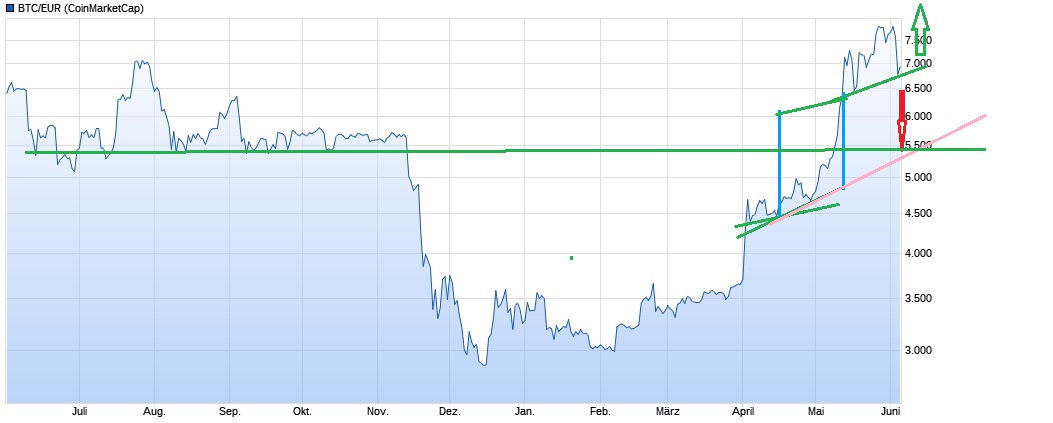 Hier ein Blick auf den Chart der relevanter ist als dass was in den letzten 2 Tagen passiert ist, da merkt man plötzlich dass die jetzige Korrektur einfach nur schnurz pieps egal ist :-))