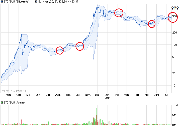 Im Übrigen sind Prognosen per Bollinger Bänder umstritten....