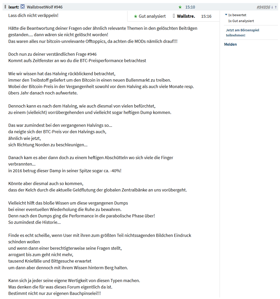 Genau deswegen, es ist viel über BTC gesprochen worden, seit der Krise mehr wie vorher was mir aufgefallen ist.