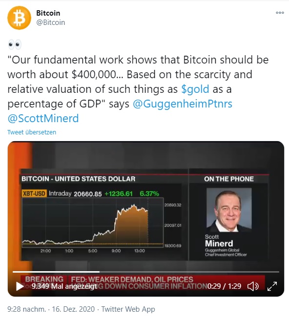 Allein die Mengen die man in den News nachlesen konnte wird der Bitcoin bald die 30K erreichen, jede Wette, dazu gibt es einfach zu wenig als dass der Preis nicht extrem steigen wird in nächster Zeit