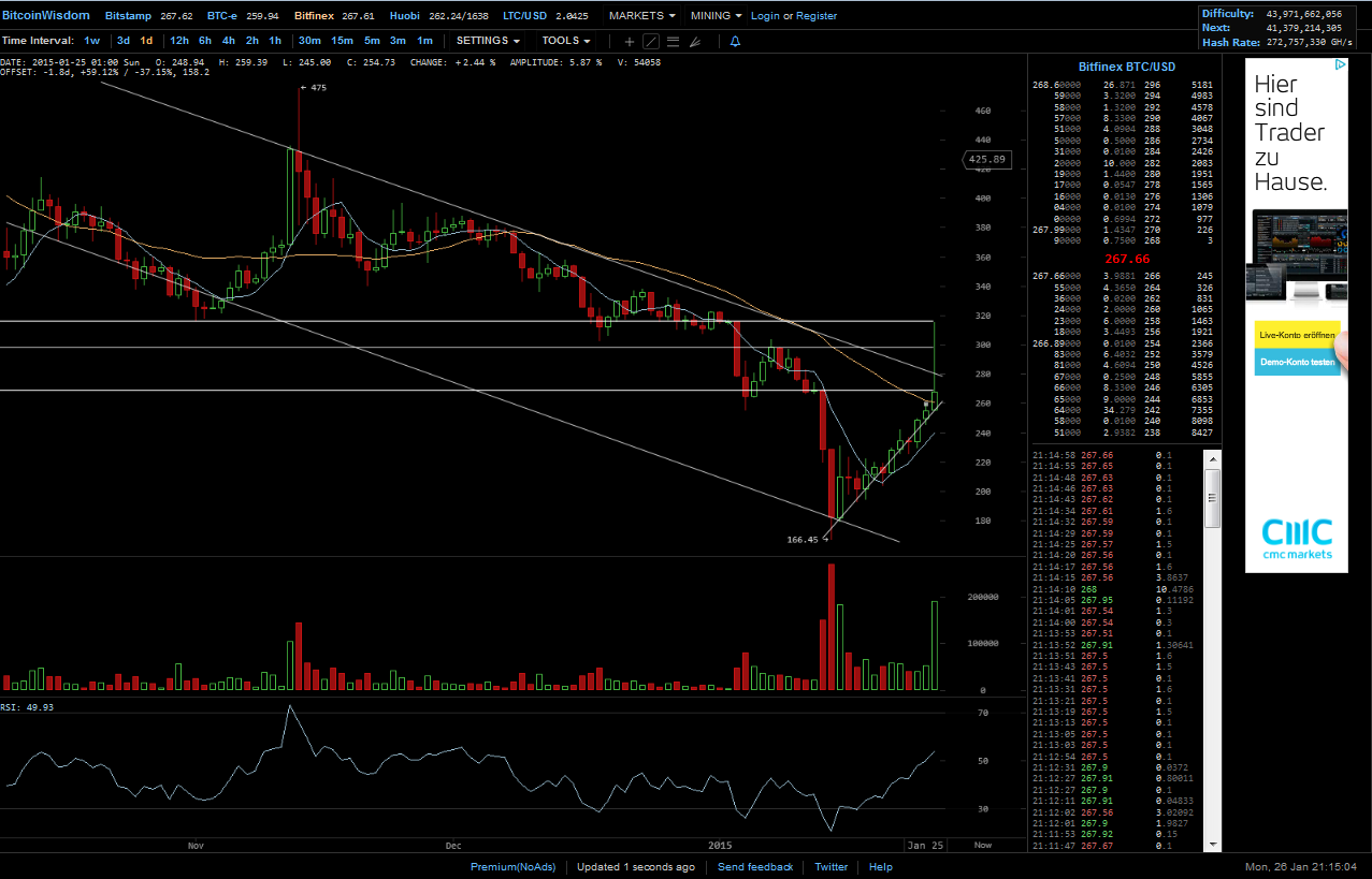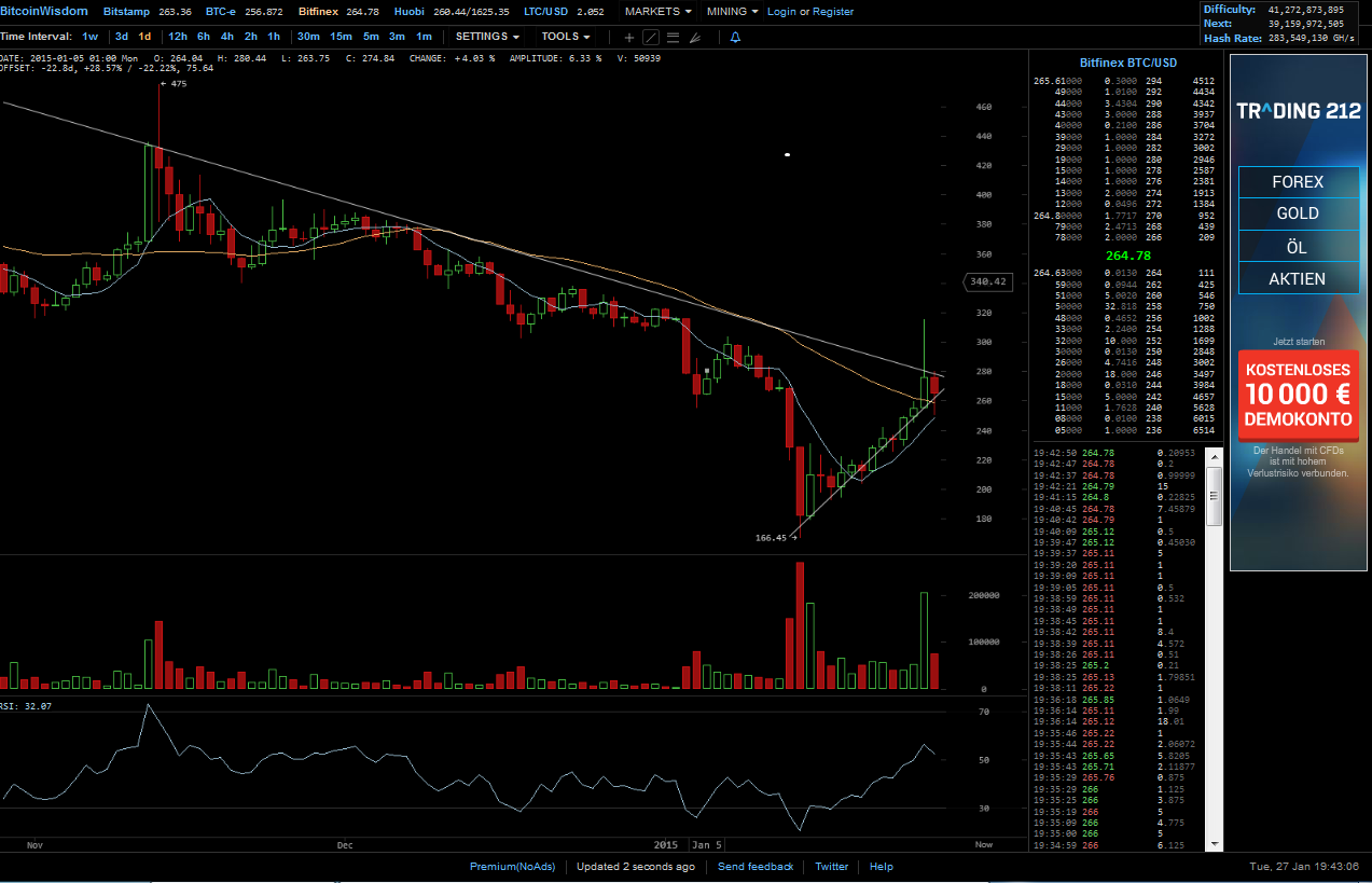 Ich als BTC-Jünger der ersten Stunde gebe (ganz im Gegensatz zu meinen Aktien) beim BTC-Handel absolut nichts mehr auf Charttechnik, RSI-Kontrolle u.ä. Bei Bitcoin funktioniert es einfach absolut nicht verlässlich - ab und an trifft man es damit, meist zeigt sich aber, dass es absolut anders läuft als die Logik dieser Analysen es vermuten lassen würde. Natürlich ist jedem freigestellt, sich danach zu richten, ich persönlich bin besser gefahren, als ich das Beiseite geschoben habe. Bei meinen normalen Wertpapieren bin ich begeisterter Techniker, hier bei BTC bin ich einfach Mensch mit Bauchgefühl und ein wenig Überlegungen hinsichtlich Massenpsychologie ;-)