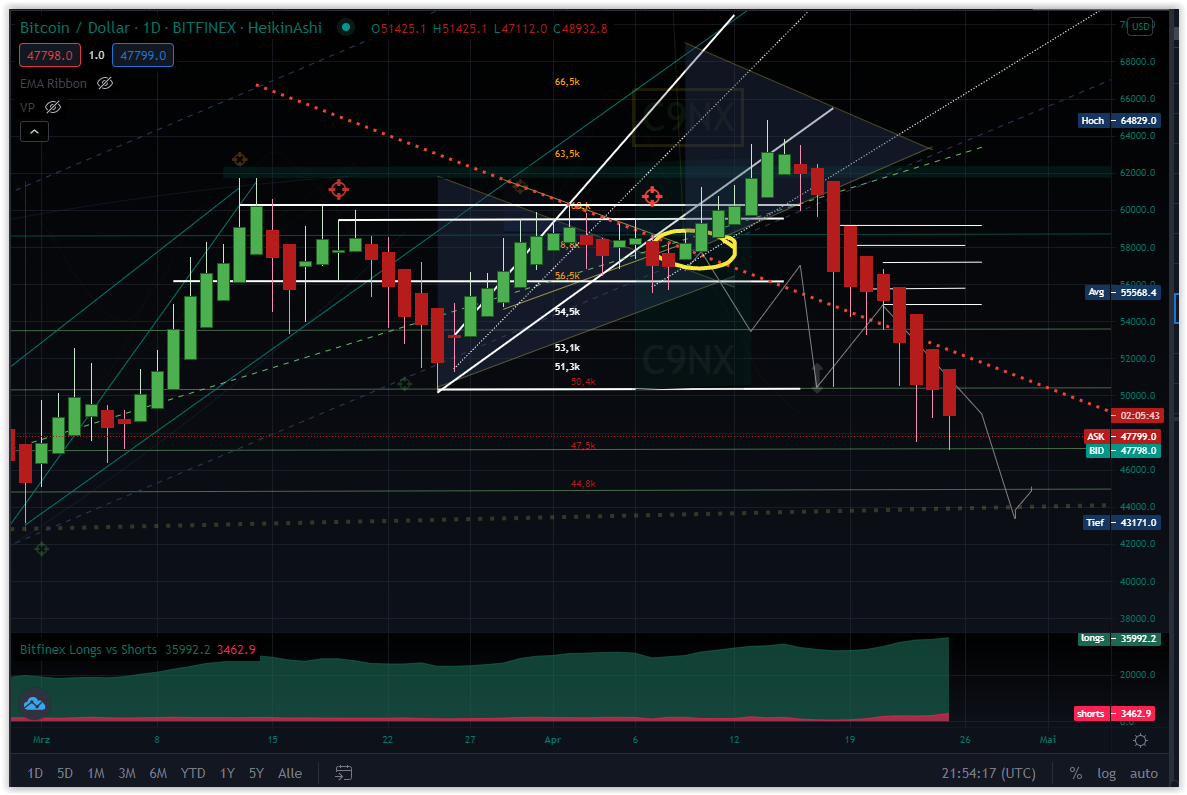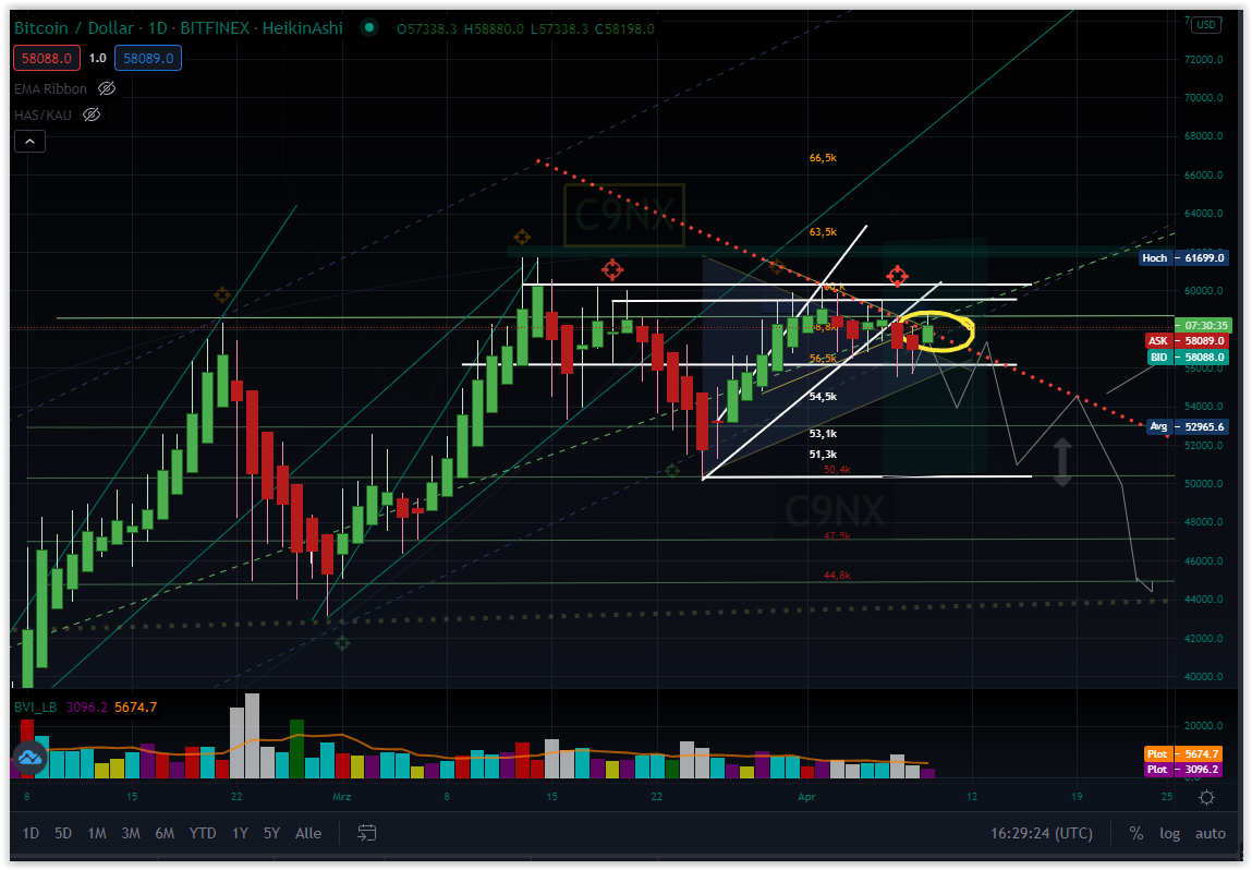 ein sehr hohes Volumen, was ein Ende der Korrektur anzeigen " könnte"! Die Bullen sind zumindest verunsichert, weshalb nicht zum großen Einstieg geblasen wird. Leider neigt sich auch die starke Jahreszeit für die Börse ihrem Ende entgegen. Das könnte auch ein Grund sein.