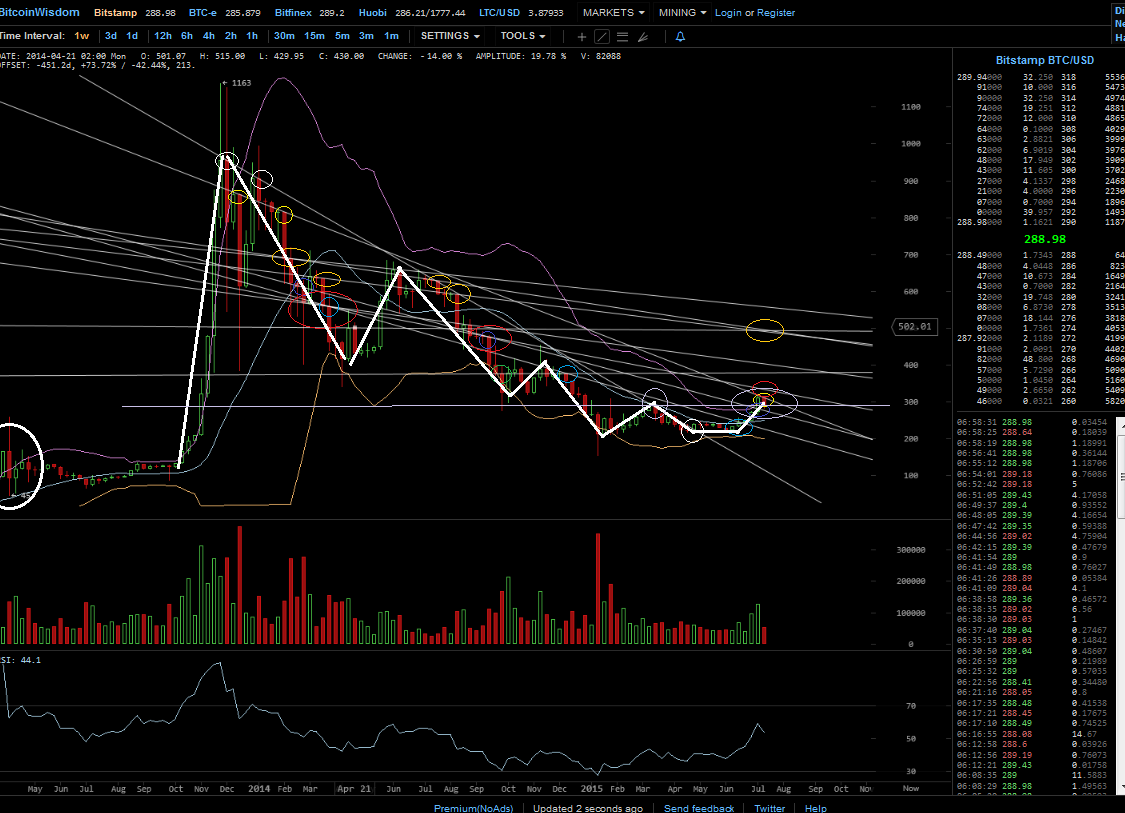 Halten es die Bullen nicht aus bis zum Sonntag zu warten um einen Angriff zu starten, dann wird es einen fette weißen CandelStick bis 400 Dollar geben, mit anschliessender kurzen Korrektur