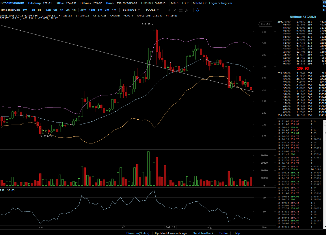 schaut an sich Bitfinex das Orderbuch an, so sinkt das Angebot an Bitcoins stetig immer weiter ab, mittlerweile deutlich unter 10.000 Bitcoins bis zu einem Preis von 340$