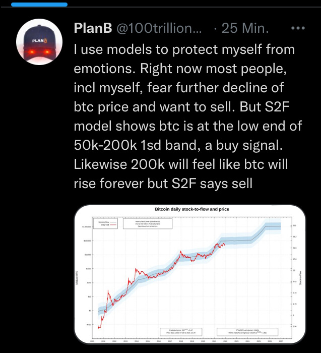Auch Plan B verspürt gerade Angst, daß Bitcoin weiter fallen könnte, sein S2F-Modell sagt nein, hier ist Kaufniveau, also abwarten…