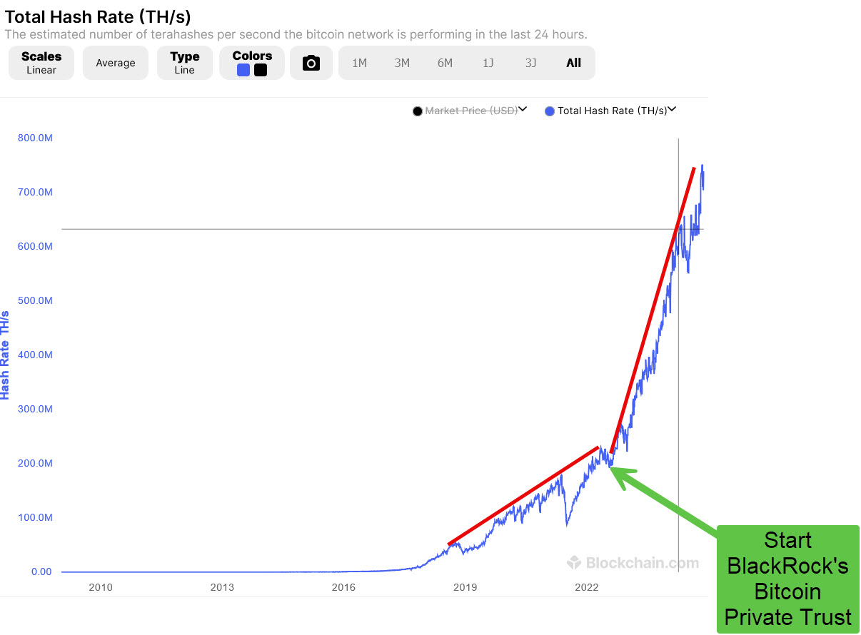 Meine Interpretation: Das ist ein länger angelegter Plan, der nun aufgeht. Mit mit dem Zugang zu Bitcoin (Bitcoin Private Trust) über einen "exklusiven Club" hat BlackRock dafür gesorgt, dass deren wichtigste Kunden von der bevorstehenden Kursentwicklung als erstes und am meisten profitieren.
