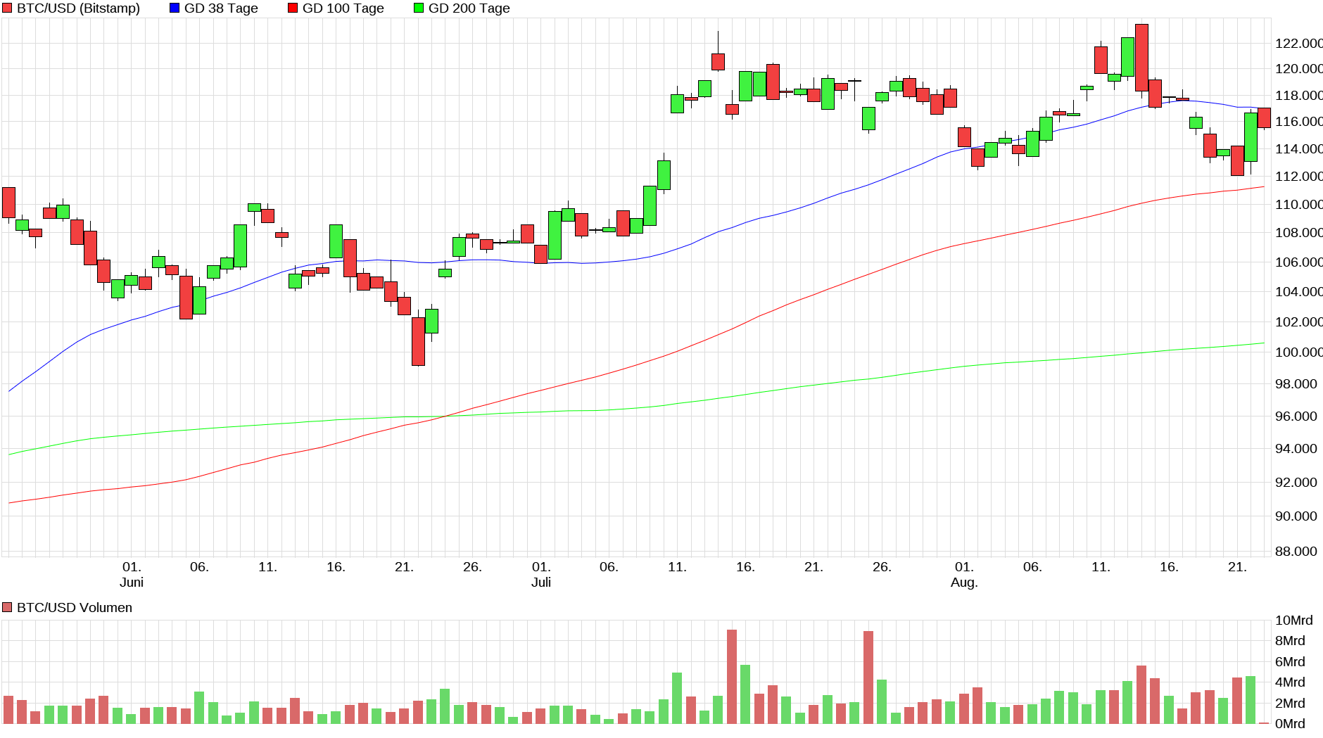 „Die Händler scheinen von Powells lockeren Kommentaren heute völlig auf dem falschen Fuß erwischt worden zu sein“, analysiert Jordi Alexander, CEO der Krypto-Handelsfirma Selini Capital. „Die Marktpositionierung der letzten Tage war klar risikoavers. Die Aussicht auf eine Zinssenkung im September führt nun zu einer panischen Neupositionierung, die sich über das Wochenende fortsetzen könnte.“