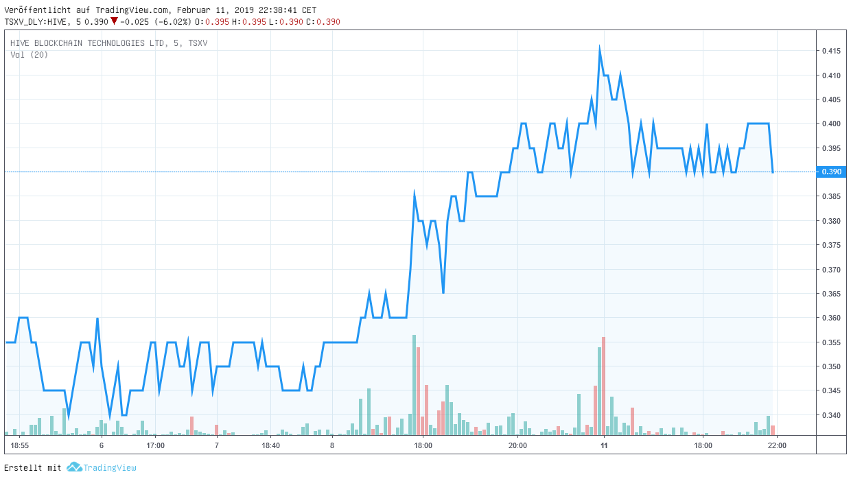 HIVE noch besser, ggü. Dezembertief = 0,245 CAD ggü. heute = 0,39 CAD = ca. +60%