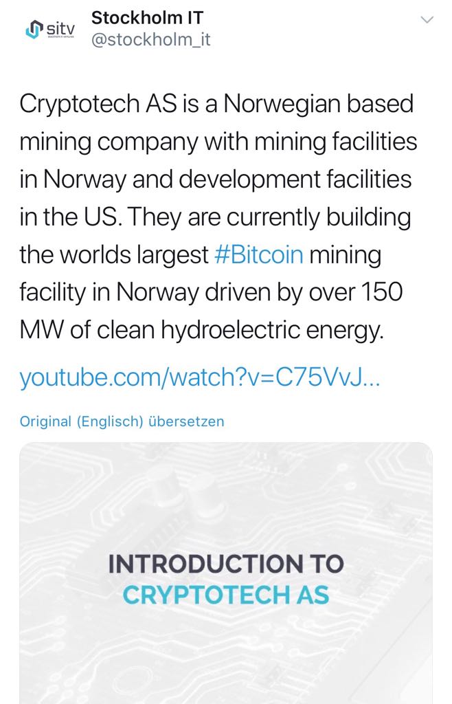 Wayne Lochner, Chairman von Stockholm IT Ventures AB, sagte: "Wir freuen uns, die Übernahme von 50% der Abbaukapazität von Cryptotech für die nächsten 5 Jahre bekannt zu geben, von der wir glauben, dass sie einen Mehrfachnennbetrag ergibt. Es ist eine sehr aufregende Ergänzung für die Gruppe und unterstreicht die Absicht des Unternehmens, ein Full-Service-Crypto-Unternehmen zur Verfügung zu stellen, um die wachsenden Bedürfnisse von Interessenten in diesem Bereich zu erfüllen. "