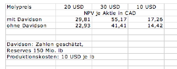 Wahrscheinlicher ist jedoch, dass zumindst die institutionellen Anleger die Ergebnisse der Reservenschätzungen (Umwidmung von Ressourcen in Reserven bei Davidson und Erweiterungen bei den restlichen Projekten) abgewartet werden. Denn alles was unter 2P-Qualität liegt, läuft üblicherweise bei einer Unrernehmensbewertung unter "ferner liefen", zumal die Konfidenzniveaus nicht bekannt sind.
