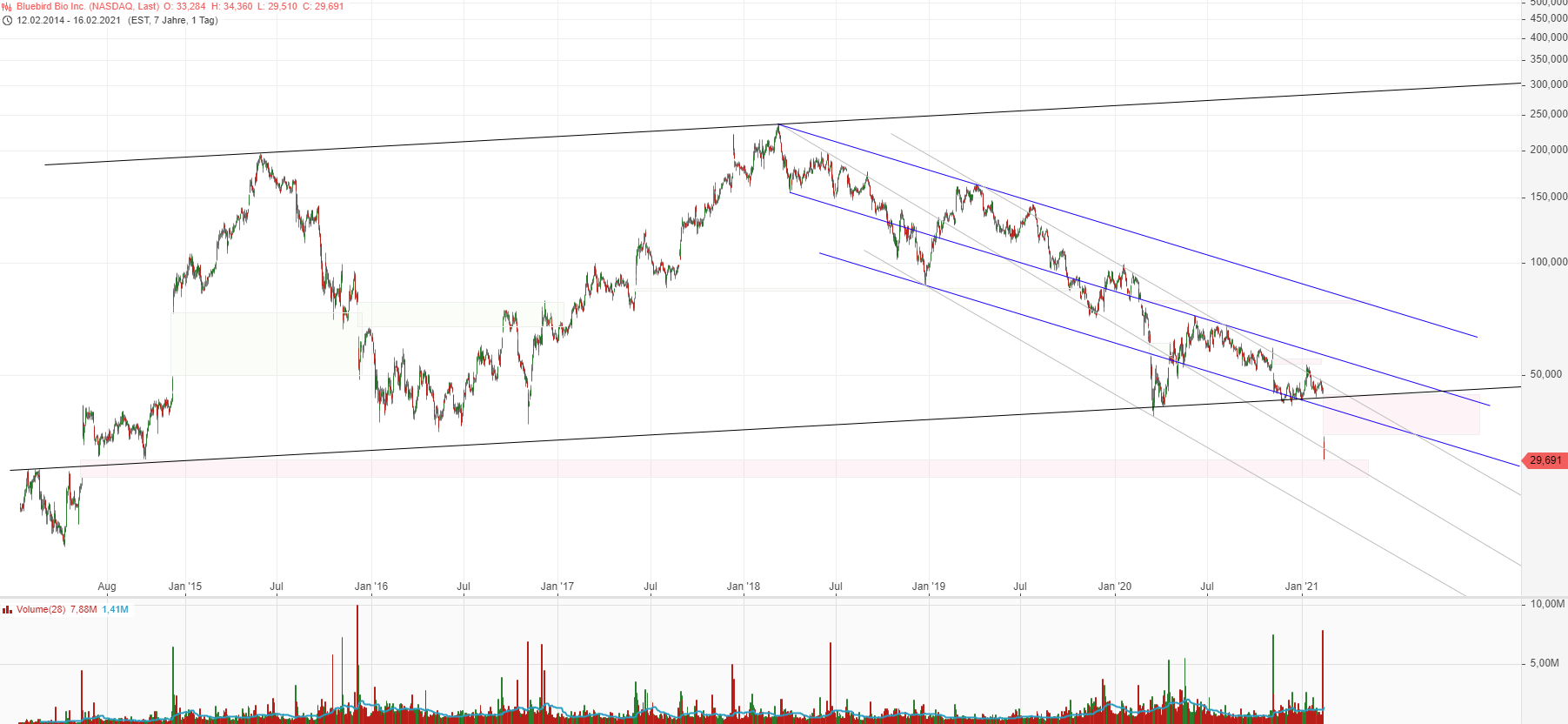 Natürlich sind gestern die Analysten noch mit auf die News aufgesprungen und haben ihre Kursziele nach unten angepasst. Zwei weitere Biotechs sind im Fahrwasser von bluebird mit gefallen.