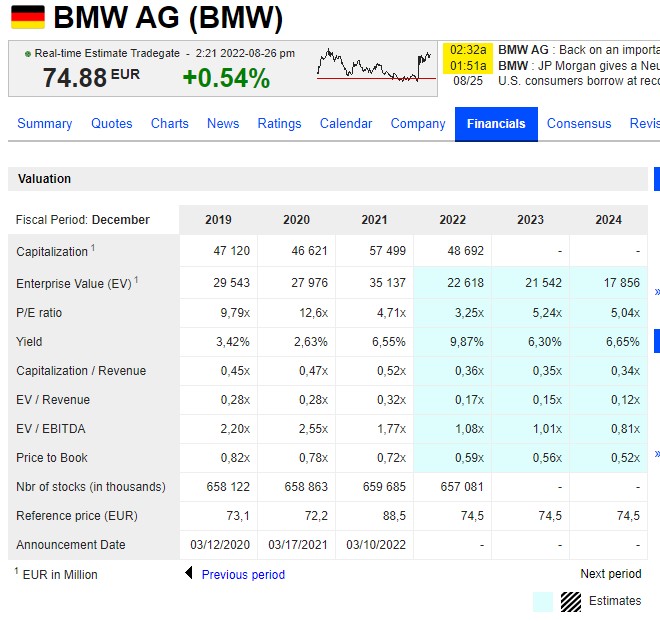 Auch die Autoverkäufe laufen - also wird man sicherlich eine gute Divi mit mindestens 7€ erhalten. Ich tippe sogar mehr, in Q2 kam nochmals ne Preiserhöhung und die Teuren Modelle wie IX etc. verkaufen sich top!