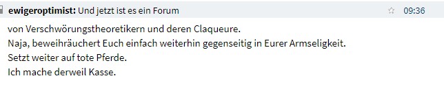 Jeder der auf Ihre abstrusen Behauptungen gehört hat, hat wohl mit diesem Investment Miese gemacht (zumindest bei längerer Haltedauer).