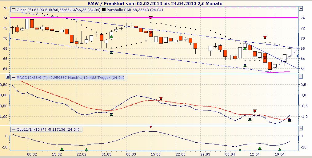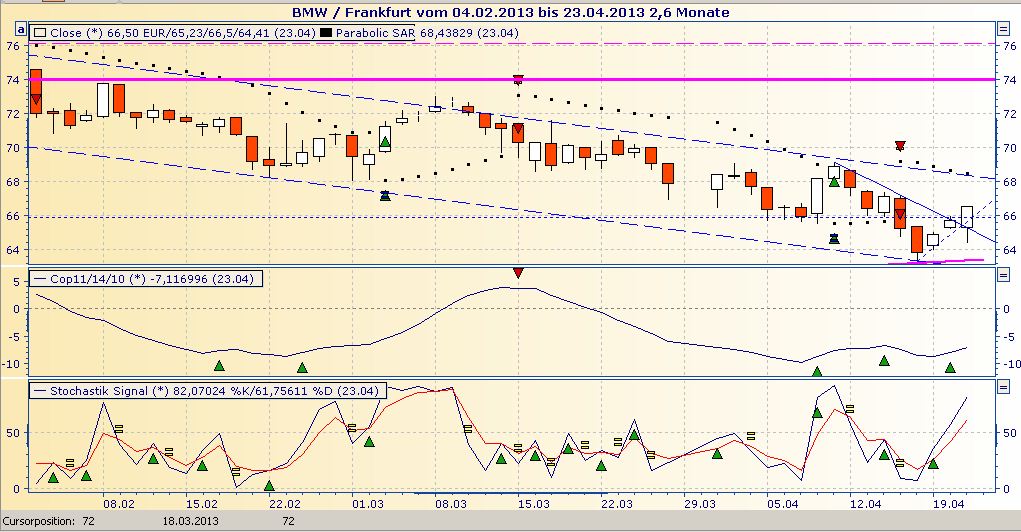 Bete und hoffe auf die Chartlinie E74,-- und werde knapp drunter ade´sagen.