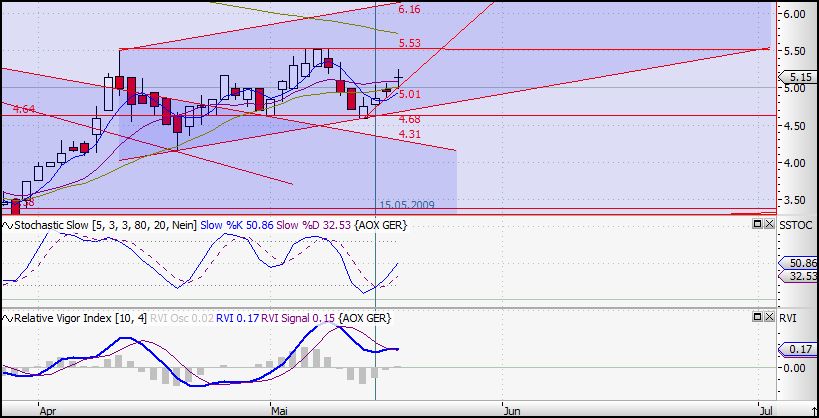Das Unternehmen halte am 10. Juni seine Hauptversammlung ab, auf der Aufsichtsrat und Vorstand eine Ausschüttung von 0,52 Euro je Aktie vorschlagen würden. Das entspräche bei einem Kurs von 6,50 Euro einer Dividendenrendite von 8%. Anteilseigner könnten sogar zwischen einer Bar- und einer Stock-Dividende entscheiden. Laut Finanzvorstand Alexander Dexne werde der Abschlag auf den Marktpreis mindestens 20% betragen. Dessen genaue Höhe werde am 19. Juni auf der Internetseite der alstria office REIT AG veröffentlicht.Nicht nur die hohe Dividende sei ein Kaufargument für den Titel. So weise die Büroimmobiliengesellschaft eine erstklassige Mietstruktur auf, was eine höhere Bewertung rechtfertige. Zudem sei der Net Asset Value per 31.03.2009 mit rund 13 Euro ausgewiesen worden, was doppelt so viel sei wie der momentane Aktienkurs.