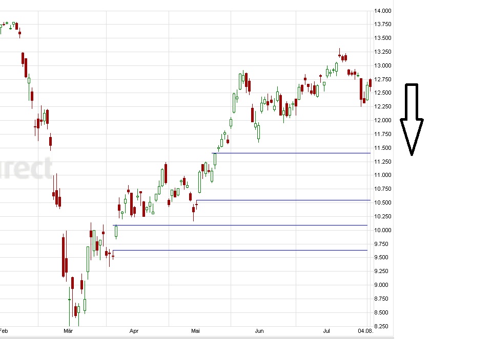 Da könnte es eine Konsolidierung geben und anschließend weiter steigen bis 13050.