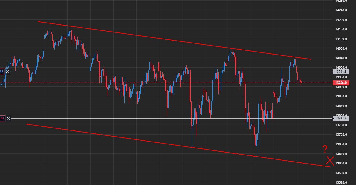 bis jetzt ein Abwärtstrend im Stundenchart bei unserem DAX