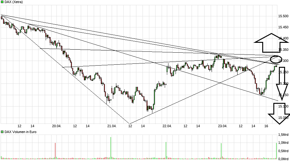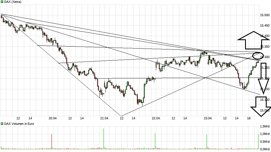 Langfristig wär z.B. der langrisitige Trendkanal, der sich in vielen Charts, wer will kann, dass muss man ja nicht nachcharten, dass bei diversen hier zitierten publizierenden Tradern oder z.B. bei Projekt 30 angucken. Der Dax ist aus diesem Kanal raus, die relevante Widerstandszone liegt bei 14200-14700 aktuell.