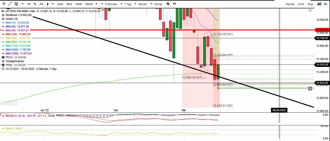 Die Hypothese ist nicht ganz eingetroffen, aber hat sich dennoch als nützlich erwiesen. Heute gab es mal keinen weiteren Abverkauf, der Preis hat sich etwas stabilisiert und auch im Intermarket war heute ein Tag zum Durchatmen. Der SnP steigt derweil fröhlich - Markets are happy.