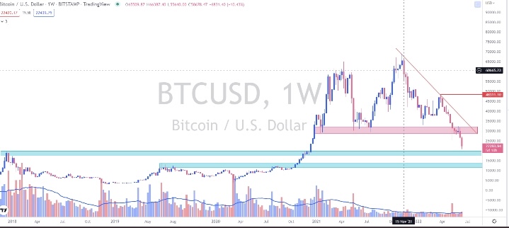 Nehmen wir doch da auch mal die großen Einzelbewegungen. Wenn ich mir nur im weekly ganz grob die Abwärtsstrecken anschau: