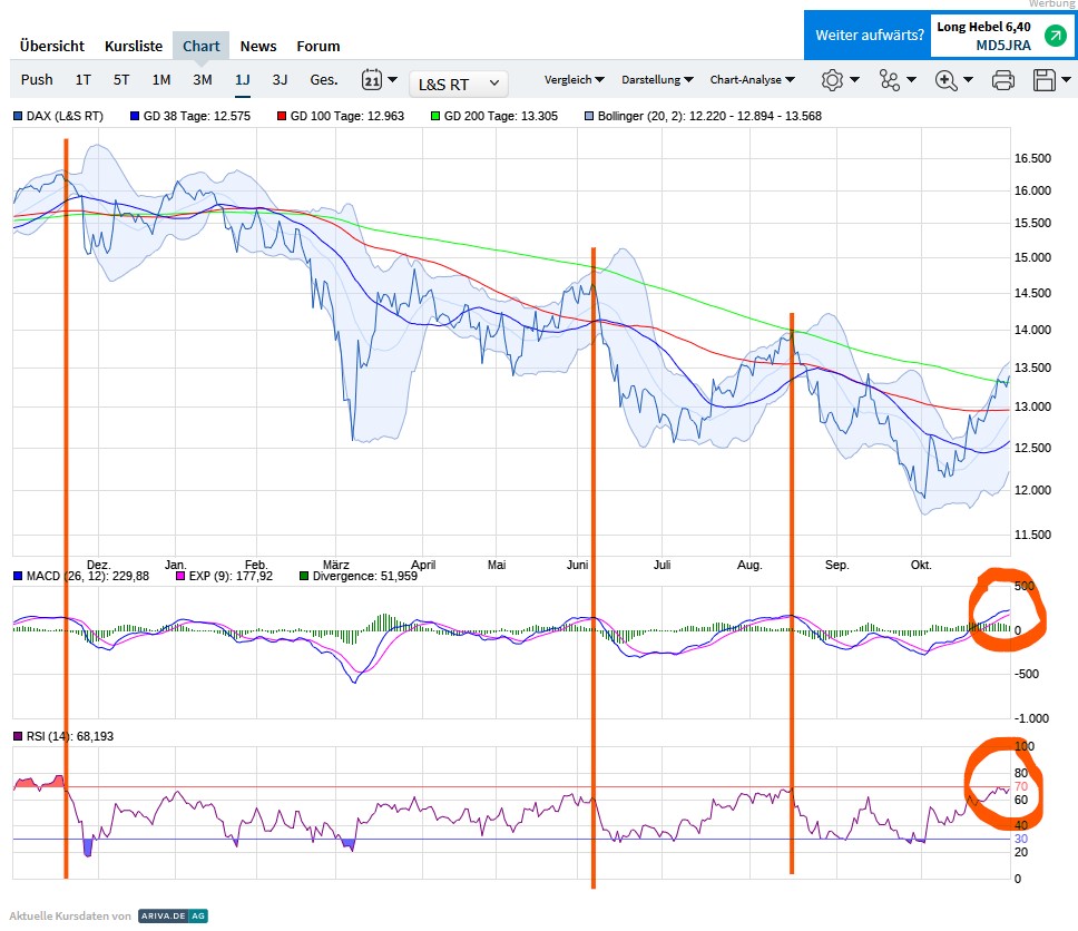 Chart ist deutlich in den überkauften Bereich überschossen.