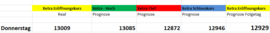 Jeden Tag neu, ich brauche Zwanghaft den Xetra Eröffnungskurs! Den habe ich leider heute morgen erst sehr spät gehabt, sonst wäre ich vermutlich bei den 13050 Short gegangen.