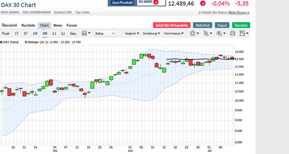 Gekko hat ja auch nur von charttechnischen Wahrscheinlichkeiten geschrieben und betont, dass der Weg nach Norden für den Dow theoretisch leichter zu bewältigen wäre. Dennoch stehen weitere Korrekturen bis entweder ca zur 12000 oder sogar noch weiter herunter im Raum - laut Gekko wäre das maximal eine kleine, wenn auch gut begründbare Überraschung. Du hast Recht Giovanni, wenn der Dow die Biege macht, wird der Dax keine Rakete nach oben starten. Das tiefe Luftholen der Indizes zwischen den Bollinger Bänden ist wahrscheinlich nichts für schwache Trader nerven, bleibt aber hochspannend. Ich muss echt aufpassen kein FOMO-Gefühl zu entwickeln, bei diesen rasanten Bewegungen kommt bei mir schnell ein " das ist deine große Chance" Gefühl auf - gefährlich !