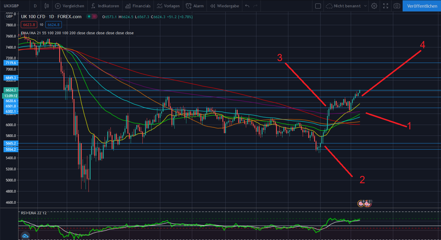Seit Nr 2) läuft der Kurs schön über der 21er EMA