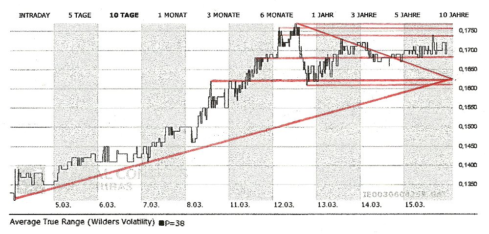 der kursverlauf nach der bekanntgabe der zahlen in der 2. woche hat sich fast so verhalten, wie ich es vermutet habe. am dienstag betrug der tageshöchstkurs 17,6 cent, hier wurden in frankfurt immerhin über stolze 11 mio. shares gehandelt, um danach mit der konsolidierung zu beginnen. schön mal ne Aktie im Depot zu haben, die am 52 Wochen hoch angelangt ist...... am freitag dann die ernüchterung zu börsenschluss in london und dublin, hier wurden hoffentlich tatsächlich nur einige ko scheine gekillt - GoA hat es in seinem post 463 geschrieben.