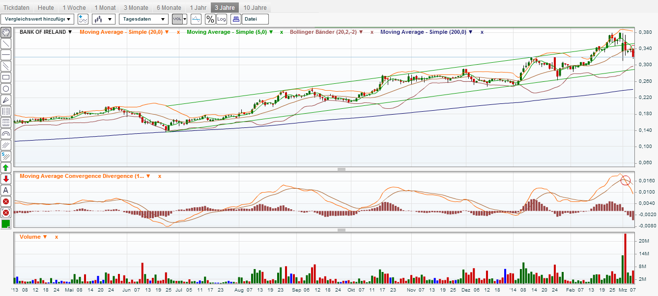 ich bin in beiden Werten investiert, BOI und AIB. Meine AIB Anteile sind mittlerweile bei 80% im Plus. Mann, was muss ich für ein Vollidiot sein. Oder hört man da Frust heraus? Und es ist natürlich sehr von Nachteil, wenn der Staat 86,5% hält, gegenüber grossen Anteilseignern, die meines Erachtens eine Mitschuld an der Kursentwicklung der letzten Woche hatten. Das kann man nicht alles den Russen in die Schuhe schieben. Ich würde niemanden einen Idioten nennen, egal, wie seine Strategie an der Börse aussieht. Und den Zahlen nach wird die AIB Ende 2014 wieder profitabel arbeiten. Das heisst, sie sind in der Ergebnisentwicklung der BOI um 1 Jahr hintendran. Ich werde meine Anteile der AIB und BOI jedenfalls noch ein Weilchen behalten, weil ich Potenzial bei beiden sehe. Und kommt mir jetzt bitte nicht mit der MK Diskussion, es gibt ausreichend Beispiele von Aktien, die weitaus höhere MK's haben und keinen Mehrwert produzieren.