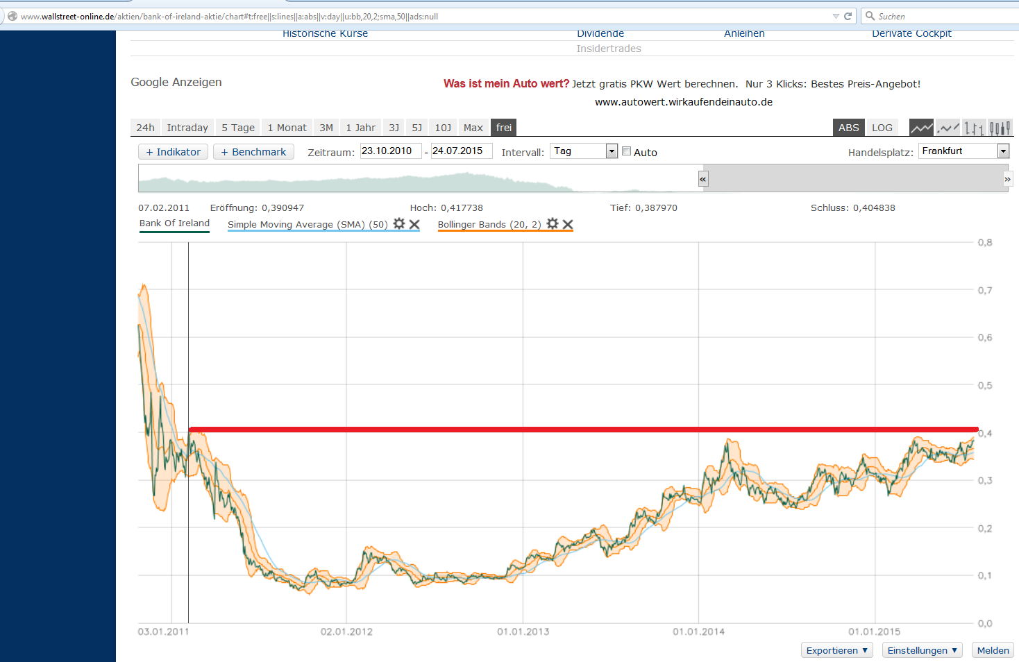 mit der veröffentlichung der halbjahreszahlen nächster woche sowie einem positiven ausblick müssten die vierzig Cent eigentlich überwunden werden. Analysten sehen der wert bei 42 Cent und meinen, dass durch eine dividendenzahlung einer irischen bank die normälität wieder in die irische Finanzwelt eintreten müsste.