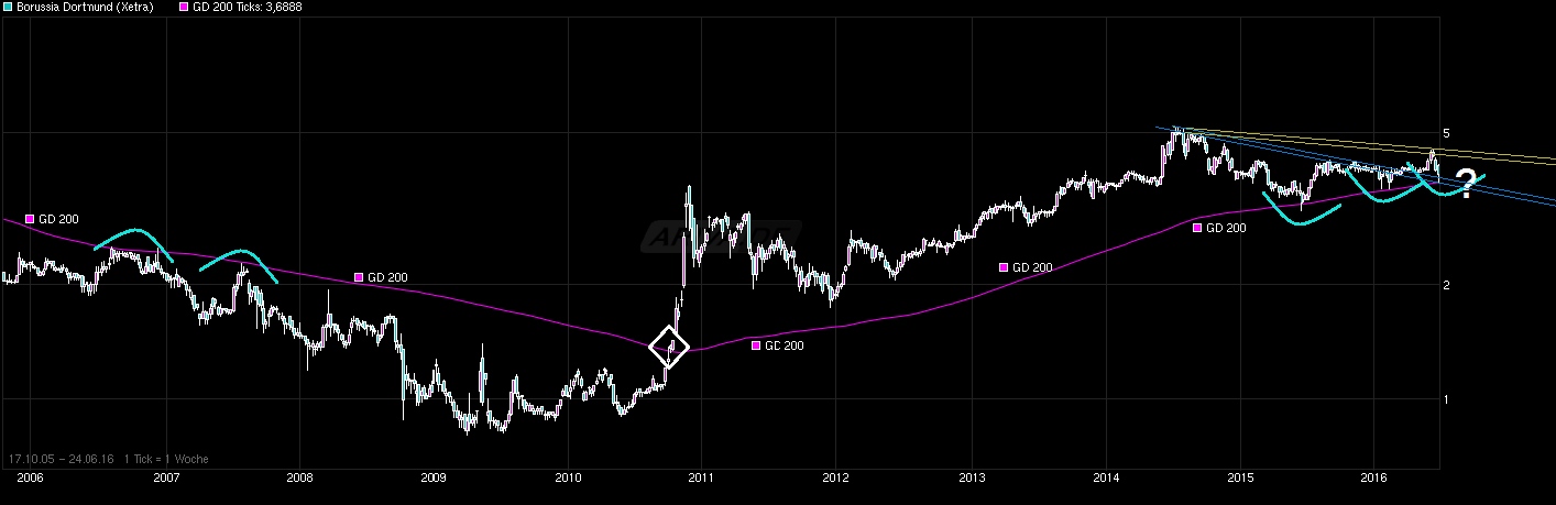 Ich nutze die Charttechnik lediglich als Randaspekt. Warum wurde die Unterstützung gebrochen? Im jetzigen Zusammenhang ist die Frage einerseits mit dem möglichen BREXIT zu begründen und andererseits mit Leerverkäufern, die da noch einen draufgesetzt haben. Aber ganz anders als beim Horrorjahr sehe ich das BREXIT Szenario speziell für die BVB Aktie nicht als Horror, sondern eher als Chance oder höchstens als gemischt.