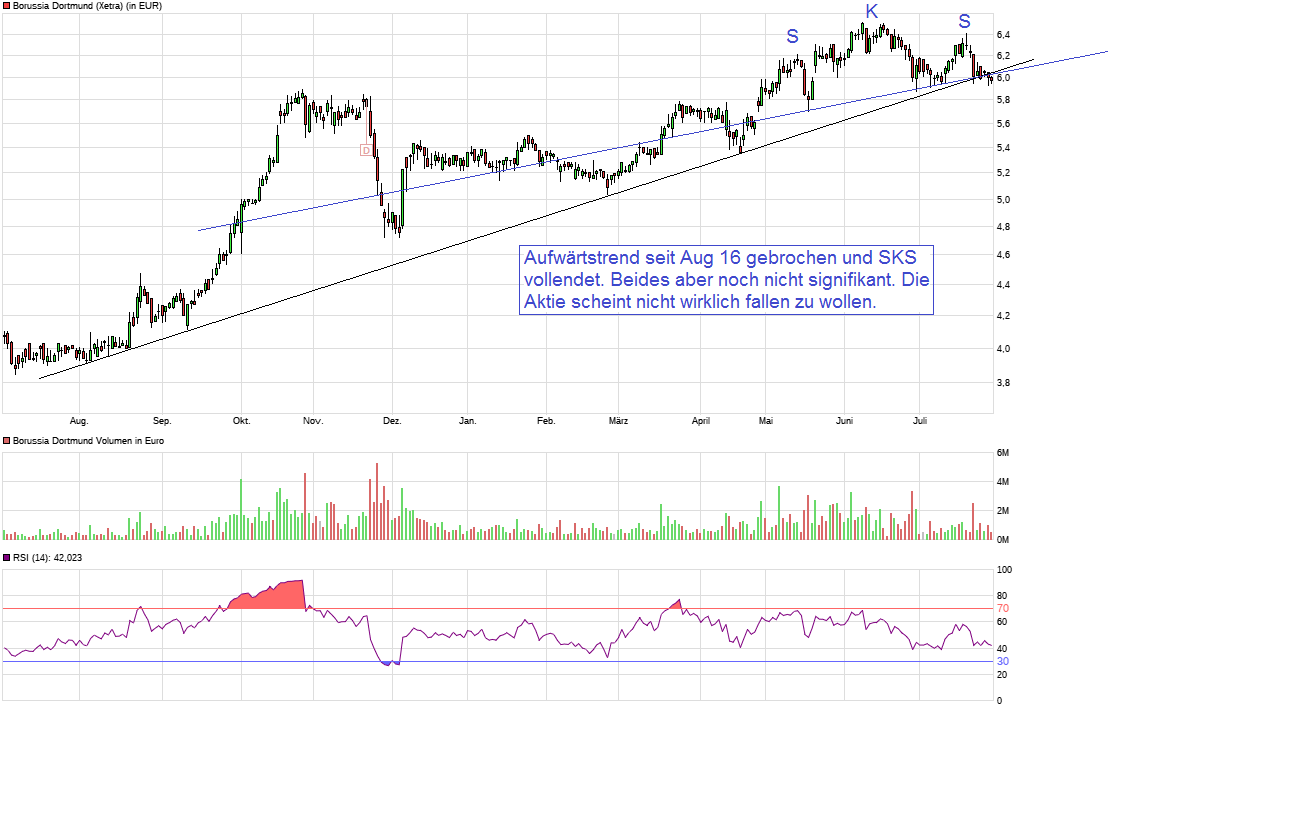 Sommer 2014 stieg der Aktienkurs ohne irgendein Pflichtspiel 36%