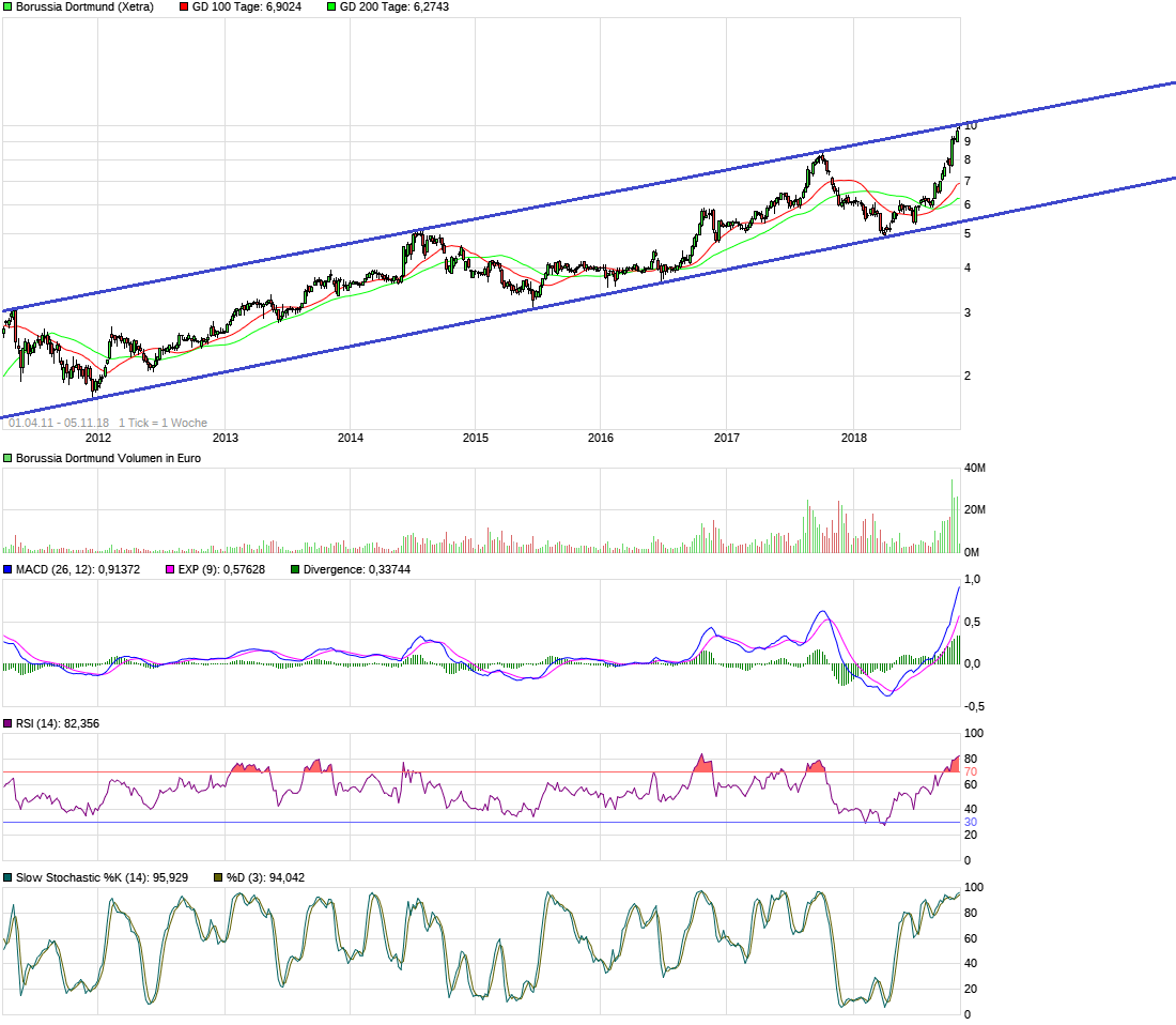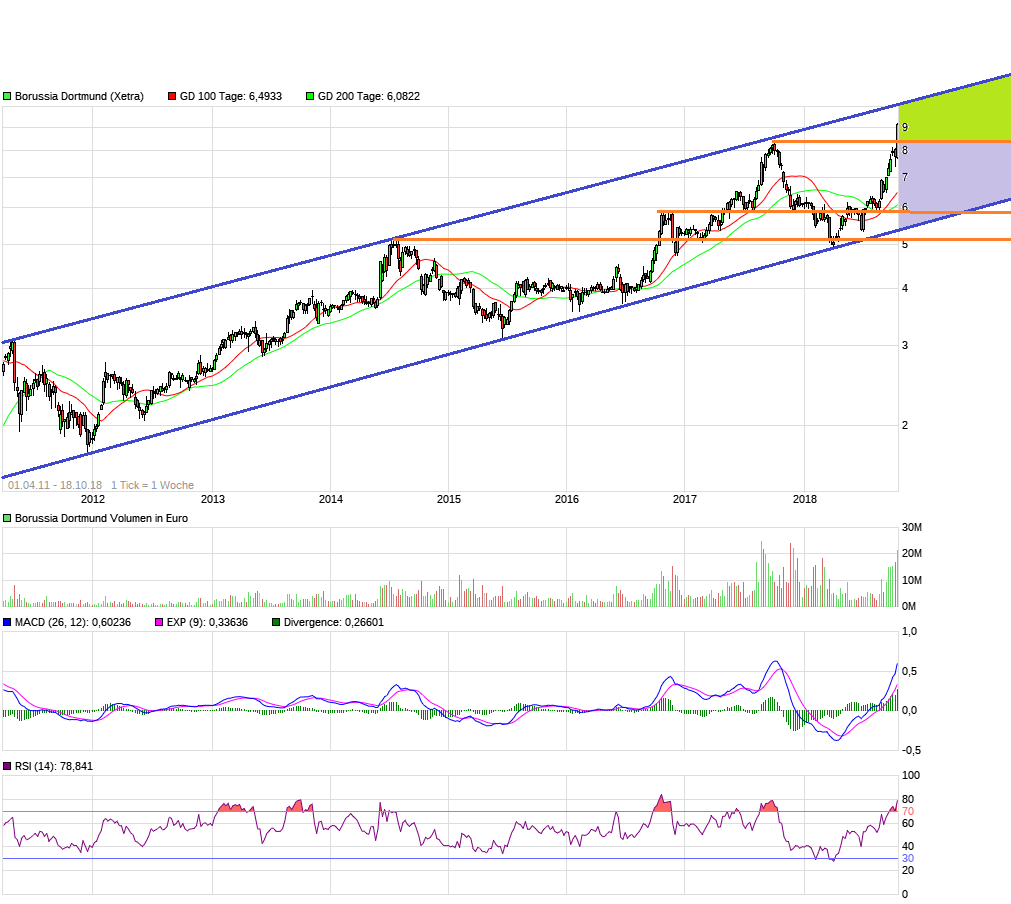 ...Das Ziel der Bullen kann jetzt nur noch das Oktoberhoch von 2017 bei 8,36 Euro sein. Auf dem Weg dorthin warten bei 7,72 und 7,89 Euro noch zwei kleinere Widerstände. Sie sollten von den Käufern leicht zu bezwingen sein, wenn die bisherige Dynamik ihre Fortsetzung findet...