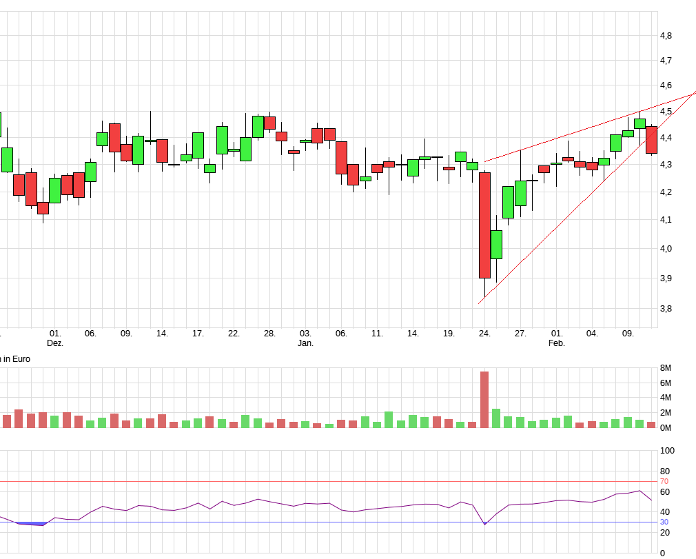 Oder willst du mir erzählen, nachdem dein Keil heute nach oben aufgelöst wurde, nimmst du einfach das heutige Hoch und legst die Linie an diesem heutigen Tageshoch an? Willst du uns verarschen? Das kann doch nicht dein Ernst sein.