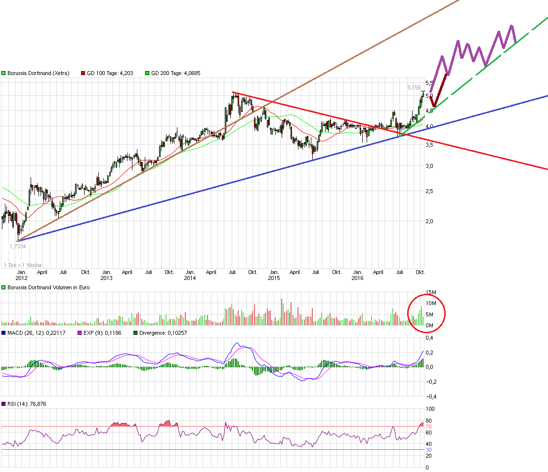 Ob Spiele verloren oder gewonnen werden, ob Spieler verletzt sind oder sonstwas, spielt keine größere Rolle, da müssten regelrechte Negativserien gestartet werden. Vollkommen zu Recht weist er daraufhin, daß die BVB Aktie vor der Jahreshauptversammlung in der Regel stark performt, das dürfte diesmal nicht anders sein. Beim Kursziel 6 Euro ist man weiterhin über 50% von der fairen Bewertung entfernt.