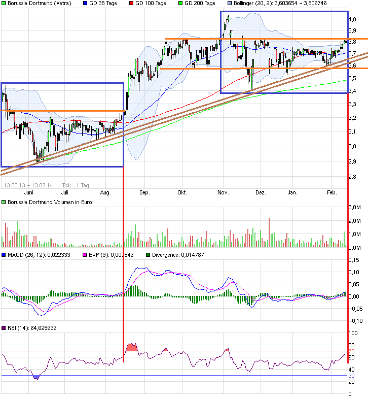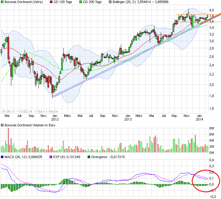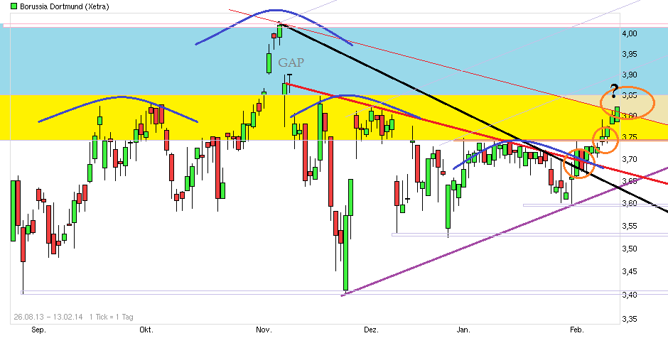 Sieht gut aus, der Kurs wird im Fall einer Niederlage heute kaum abschmieren, umgekehrt sieht es da anders aus. Die Spiele danach sind erst mal alle machbar, Leverkusen spielt gegen Schalke, die nehmen sich gegenseitig die Punkte ab.