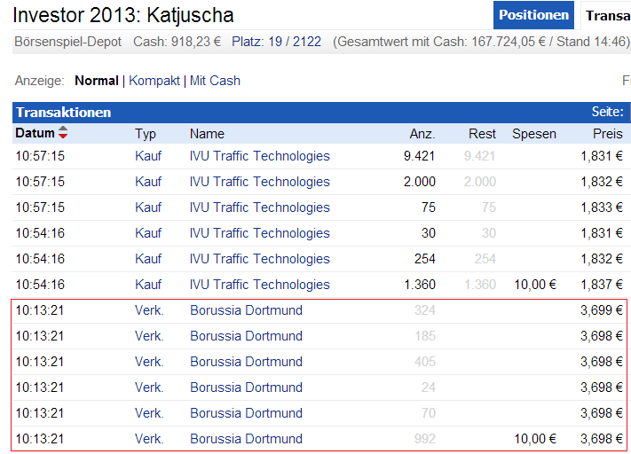 Ich sage es noch einmal hier verkaufen viele größer investierte und die dummen Kleinanleger kaufen weil es in den letzten 24 Monaten eine Euphorie um den BVB gab.
