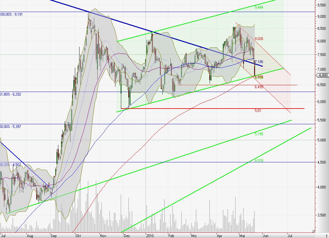 Obwohl sich die Bareinnahmen vor Änderungen des Working Capital um 61,6% auf 10,0 Millionen Euro verbesserten (Q1 2009: 6,2 Millionen Euro), belief sich der Cashflow aus operativer Tätigkeit auf -0,4 Millionen Euro (Q1 2009: 13,9 Millionen Euro). Diese Entwicklung spiegelt hauptsächlich verlagerte Arbeitsprozesse bei Geschäftspartnern und damit eine zeitlich verschobene Rechnungsstellung wider. Der Cashflow aus Investitionstätigkeit betrug -40 Tausend Euro (Q1 2009: -3,2 Millionen Euro), dies ist einerseits darauf zu-rückzuführen, dass Investitionen nur in Instandhaltung gemacht wurden und andererseits auf Einnahmen aus dem Verkauf von Maschinen. Der Cashflow aus Finanzierungstätigkeit lag im Berichtszeitraum bei 1,7 Millionen Euro, verglichen mit -9,1 Millionen Euro im Vorjahresquartal. Darin spiegelt sich vor allem der Anstieg der auf Rubel lautenden, kurzfristigen zinstragenden Verbind-lichkeiten der Tochtergesellschaften von C.A.T. oil wider.