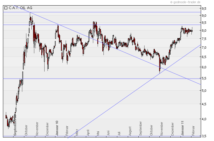 Die liquiden Mittel stiegen um 17,3% gegenüber dem Vorjahr auf 34,1 Millionen Euro zum 31. Dezember 2010. Mit einer Eigenkapitalquote von 83,2% arbeitet C.A.T oil auf Basis einer sehr soliden Bilanz.