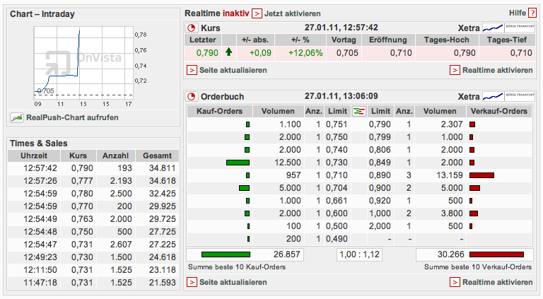 am 25.03.2011 die Schwelle von 75 % überschritten hat und zu diesem Tag 75,74 % (9.126.270 Stimmrechte) beträgt.