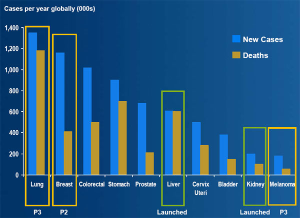 Pills from Pfizer and Bayer (nyse: BAY - news - people ) that hit not only VEGF, the Avastin target, but also other proteins in the cell, are showing incredible promise. Results from a VEGF pill being developed by Novartis (nyse: NVS - news - people ), however, were disappointing. Rivals such as Amgen (nasdaq: AMGN - news - people ) and the team of Sanofi-Aventis (nyse: SNY - news - people ) and Regeneron Pharmaceuticals (nasdaq: REGN - news - people ) are years behind.