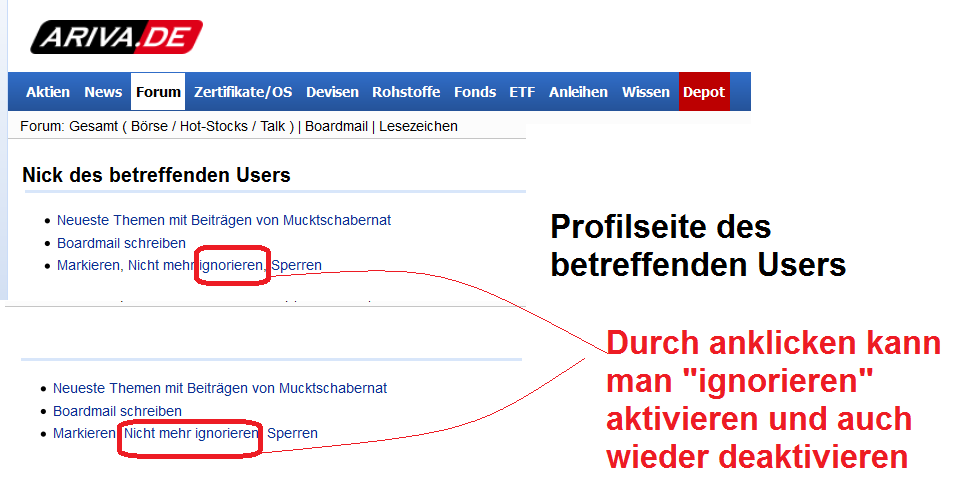 Ist relativ simpel. Einfach auf das Avatar oder den Nick des betreffenden Users in der Posting-Headline klicken. Dann kommt man so auf die Profil-Seite des Users. Dort kann man oben links unterhalb des User-Nicks dann bestimmte Punkte auswählen. Unter anderem Dinge wie z.B. sperren, etc. und auch "ignorieren" anklicken. Dann werden die Postings dieses ungewünschten Users ab dann ausgeblendet. Bei hirnlosen Perma-Trollen und Stumpf-Bashern einfach angenehm, wenn man deren infantilen Dünnpfiff nicht mehr lesen muß und dadurch die interessanten Beiträge schneller erkennbar sind. Am angenehmsten ist aber natürlich immer, wenn der entsprechende Thread-Eröffner ( wäre hier in dem Fall der USer BackhandSmash )