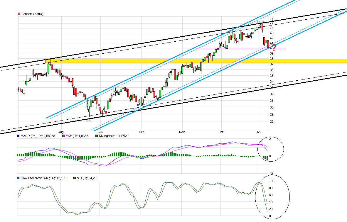 Trotz massiver Kursverluste im Dax z. B. (rund 10% in 10 Tagen) und im Tecdax (immerhin 6,5% seit Montag) steht Cancom knapp unter seinem ATH von Mittwoch. Das ist nicht einmal eine Konsolidierung, das ist ein schnurgerader Aufwärtstrend seit September, du Laberheini.