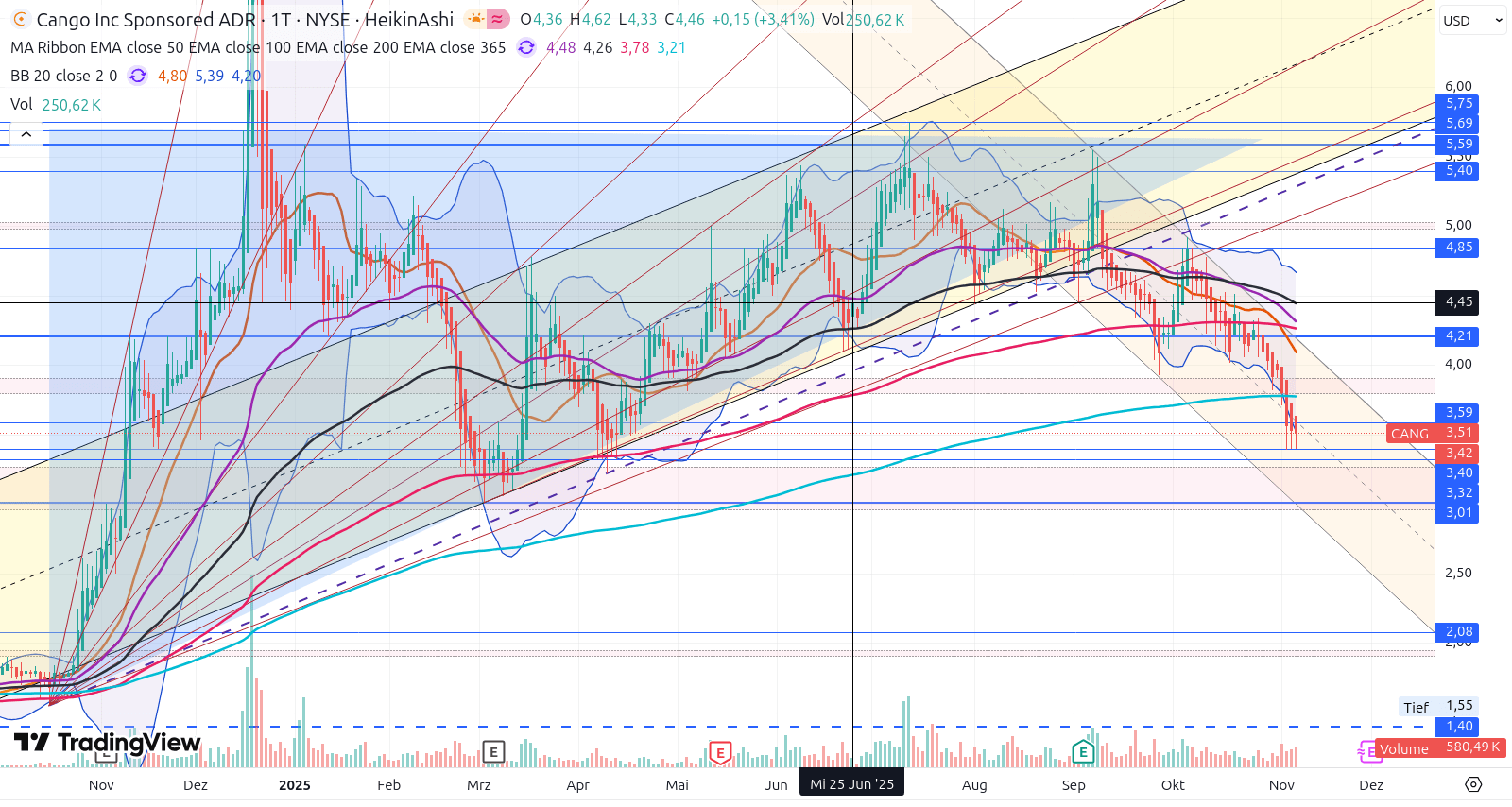 Aktuell gurkt Cango jedenfalls noch knapp oberhalb des EMA 365
