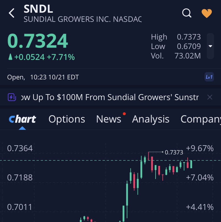 Heute dann ganz ordentlich rauf. Ein Lebenszeichen von Sundial. Fehlt noch einiges, um das rot in meinem Depot auszugleichen, aber immerhin ein Anfang. Für mich als Außenstehenden erscheint es mir als ein super Geschäft: