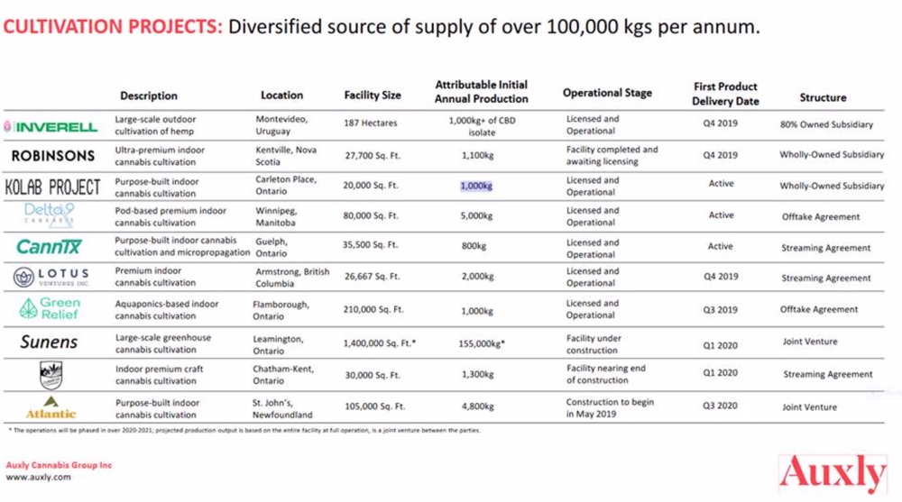In January 2019, we received our first shipments of cannabis from several partners with delivery and production expected to increase steadily throughout the year. (3)